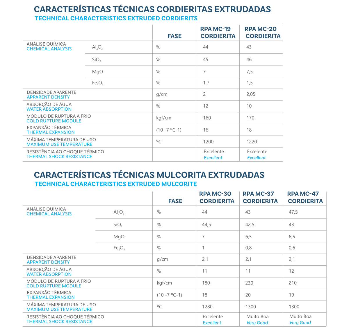 Os blocos e peças são produzidos por extrusão, prensagem ou moldagem, com excelente precisão dimensional. A RPA se destaca pela resistência dos materiais ao ataque químico, abrasão, compressão e choques térmicos e suas excelentes propriedades de retenção térmica mesmo em situações extremas de temperatura.