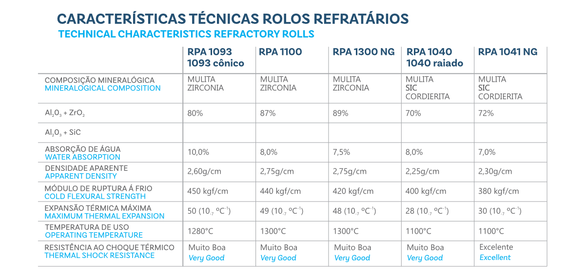 Aliado as características da composição RPA 1040, o rolo raiado é indicado para ser usado em situação de extrema variação térmica, especificamente no resfriamento direto dos fornos.